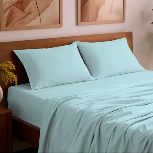 • Mellanni Queen Sheets Set - 4 PC Iconic Collection Bedding - Hotel Luxury, Extra Soft, Cooling Bed Sheets - Wrinkle, Fade, Stain Resistant (Queen, Aqua)