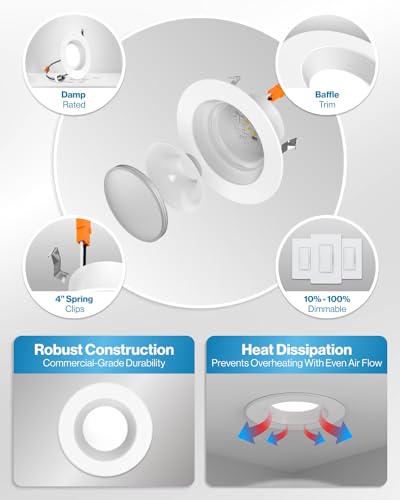 Sunco 10 Pack Retrofit LED Recessed Lighting 4 Inch, 3000K Warm White, Dimmable Can Lights, Baffle Trim, 11W=60W, 660 LM, Damp Rated - ETL.
