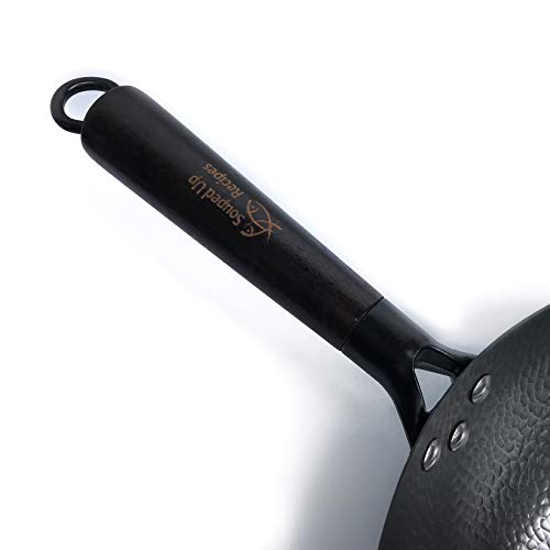 Souped Up Recipes 12.5 Inch Carbon Steel Wok For Electric, Induction and Gas Stoves (Lid, Spatula and User Guide Video Included), A-12.5 inch Wok with Wooden Lid