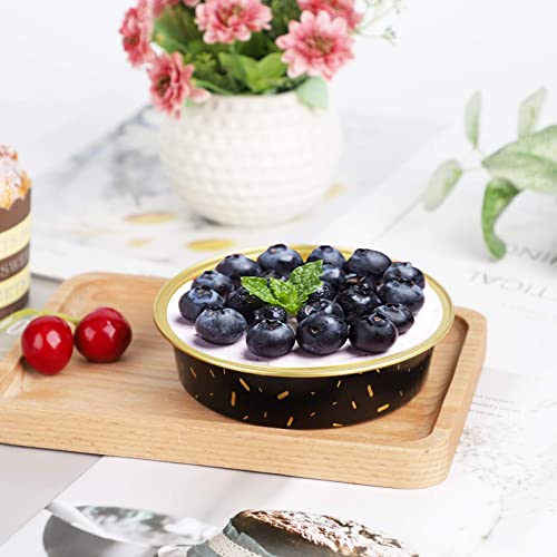 Beasea Mini Aluminum Pie Pans, 50 Pack with Lids, 8 Oz Black Gold Cartoon Tart Pans for Pie, Tart, Quiche, Black/Gold, 50 pcs