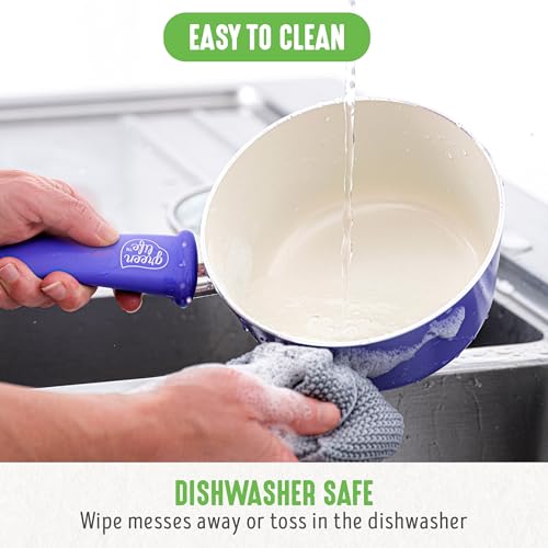GreenLife Soft Grip 16 Piece Cookware Set, Non-Toxic PFAS-Free Ceramic Nonstick, Frying, Sauce, Saute, Utensils, Glass Lids, Stay-Cool Handles, Wobble Free, Dishwasher & Oven Safe, Periwinkle