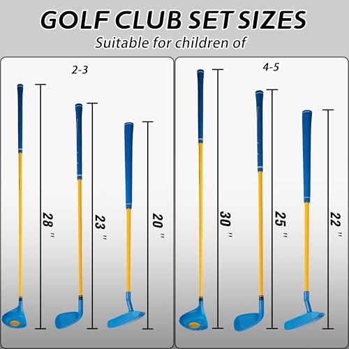 PGM Children's Golf Club Set - Can Hit Real Balls, 3 Pieces Clubs Includes Wood, Iron, and Putter, Great for Beginner Boys and Girls, Instructional Training Set, Blue, 2-3 years Item Sku: