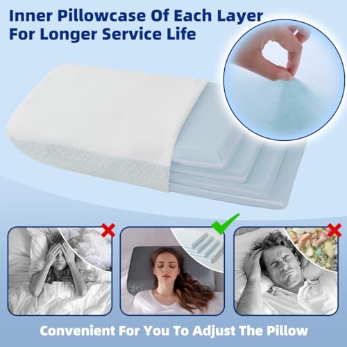 LOFE Adjustable Memory Foam Pillow - 4 Height from 1.2 to 4.8in, Cervical Pillow for Neck Pain Relief, CertiPUR-US Neck Support Pillow for Side Sleepers, Back/Stomach Sleepers, a Removable Cool Cover