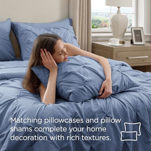 • Bedsure Twin Comforter Set Slate Blue - Bed in a Bag Twin Size 5 Pieces, GentleSoft™ Pintuck Bed Set Gift for Family, Pinch Pleat Slate Blue Comforter with Sheets, Pillowcase & Sham