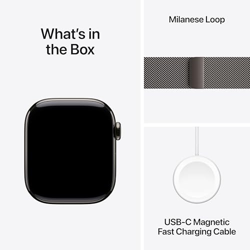 Apple Watch Series 10 [GPS + Cellular 42mm case] Smartwatch with Slate Titanium Case with Slate Milanese Loop. Fitness Tracker, ECG App, Always-On Retina Display, Carbon Neutral, 42mm case + Small/Medium band Item Sku: