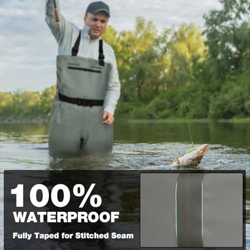 DikaSun Fishing Waders for Men & Women, Waterproof 2-Ply Nylon/PVC Chest Wader with Boots for Fly Fishing Sizes 4-14 Bootfoot Waders Lightweight, Grey, US-M8/W10
